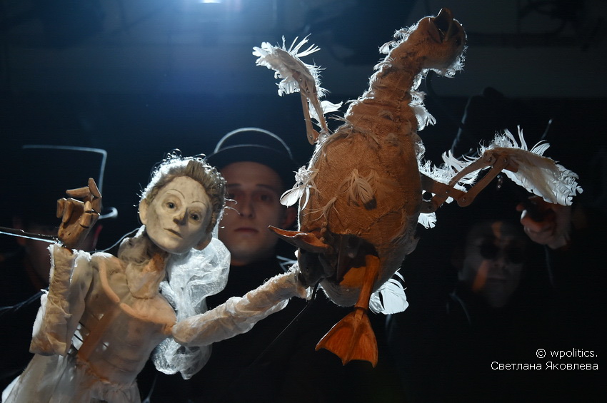 Такие тихие истории нужно рассказывать особенно камерно. Среди героев спектакля — сложнейшие куклы, каждой из которой управляют несколько артистов. Специально для «Последнего сна Уточки» они учились искусству вождения кукол.