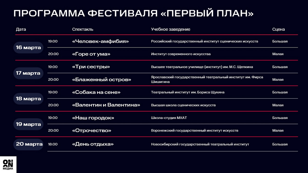 На фестивале будет две конкурсные программы: на Большой и Малой сценах.