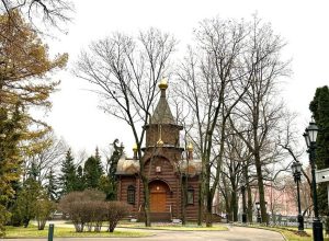 В 1995 году рядом со строящимся храмом Христа Спасителя был построен деревянный, шатровый храм-часовня во имя иконы Божией Матери «Державная». Малый храм-часовня иконы Божией Матери «Державная» храмового комплекса храма Христа Спасителя был сооружён в традиционном Русском стиле в виде бревенчатого сруба, в плане имеющего форму базилики с килевидными арочными наружными сводами над входами с трёх сторон и абсидой с четвёртой. Над каждым из четырёх арочных сводов установлены главки-маковки. Центральная часть увенчана шатровым шпилем с центральной маковкой. Все маковки выполнены сусальным золотом. Здание стоит над землёй на каменном фундаменте высотой около метра, что придаёт ему ещё более величественный вид.