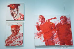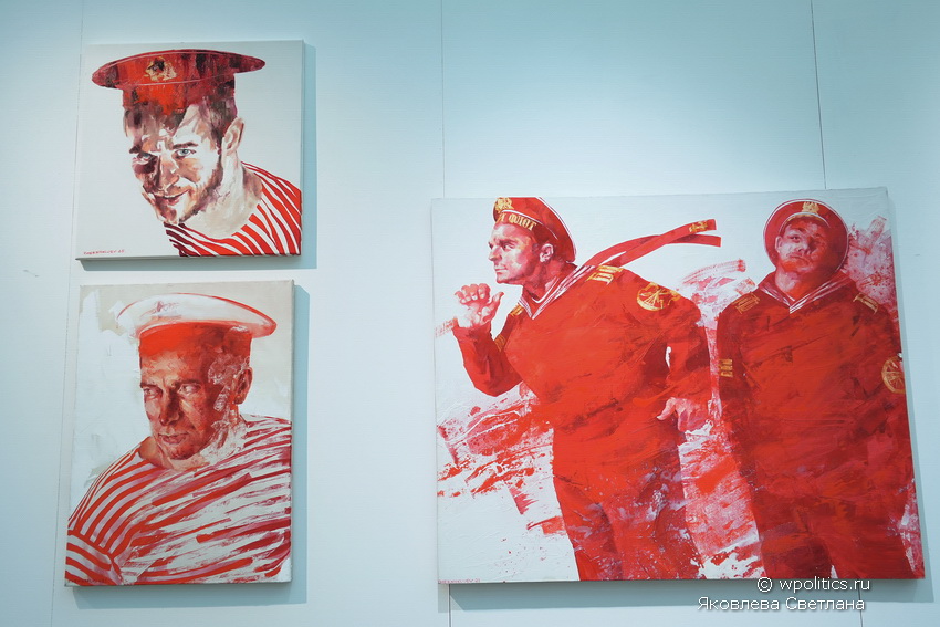 В центре экспозиции — диптих Константина Грачева с изображением танцующих и поющих цыган, символизирующих свободу жизни. Напротив них-одинокая девушка в пустом кинозале, олицетворяющая современное одиночество и утрату связи с реальностью.