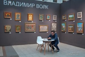 Ирина Волк представила работы своего отца Владимира Волка –  известного художника-шестидесятника периода «оттепели». Экспозиция посвящена православной тематике. На многих пейзажных работах изображены храмы. В них наряду с глубоко почтительным отношением к натуре проступает желание художника открыть для себя духовную составляющую, проникнуть в суть увиденного и через полотно работы проложить мост между зрителем и сокрытым от глаз смыслом