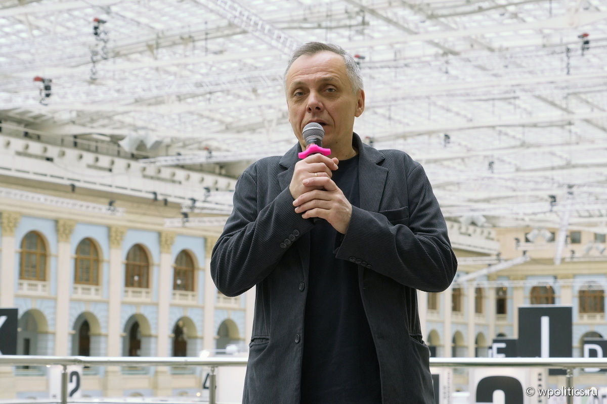 Встречу открыл Василий Бычков, руководитель ярмарки non/fictio№, генеральный директор компании «ЭКСПО-ПАРК ВЫСТАВОЧНЫЕ ПРОЕКТЫ».