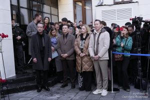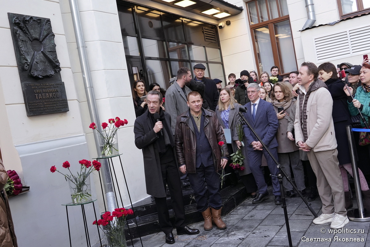 В День памяти Олега Табакова у здания Исторической сцены на улице Чаплыгина состоялось открытие памятной доски, посвященной основанию театра.