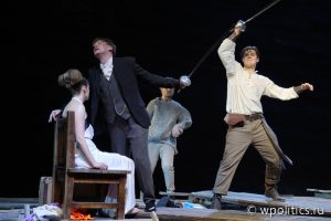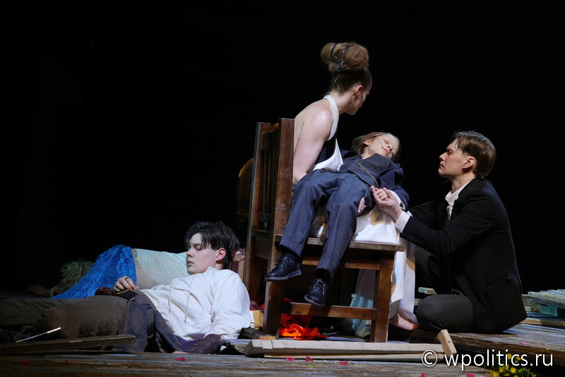 В спектакль введены два новых персонажа: Гамлет в детстве (Алексей Сошин) и живой шут Йорик (Сергей Бесхлебнов).