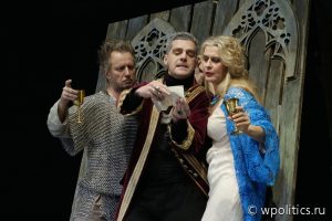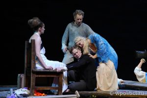 (тронным залом, королевской опочивальней, палубой корабля, кладбищем). Костюмы отсылают к эпохе Шекспира, но с современными акцентами (например, Гамлет одет как «книжный человек», напоминающий университетского преподавателя).