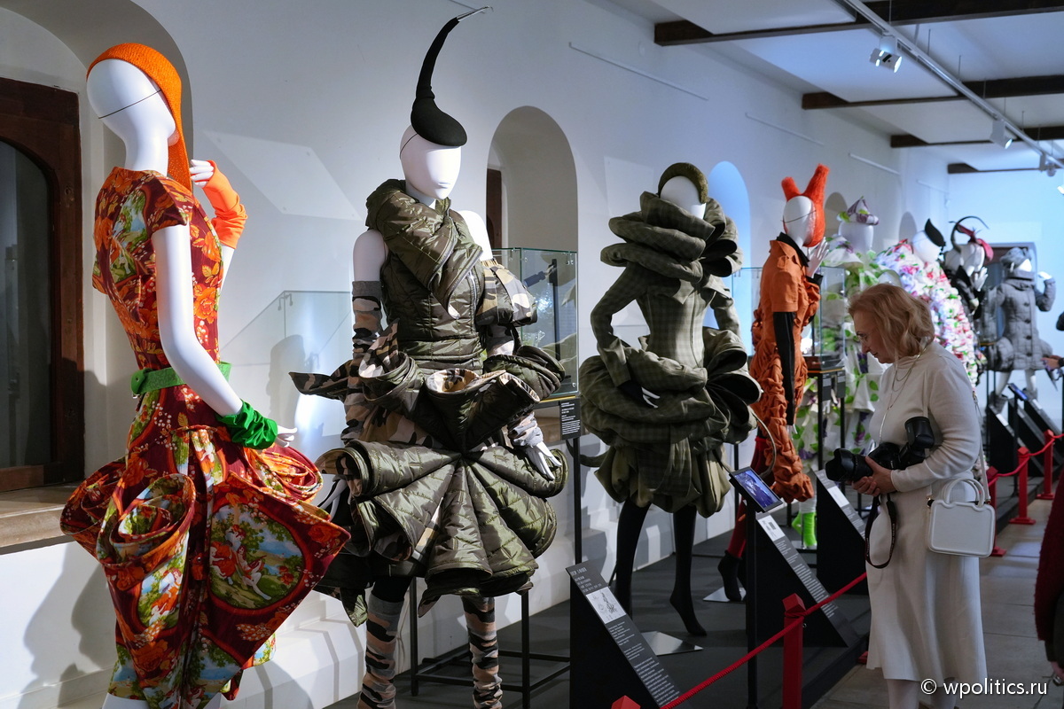 Также в экспозиции представлены студийные съемки и видео с показов, в которых появятся герои, динамика и пространство, что важно для создания более полного впечатления об экспериментах дизайнера.